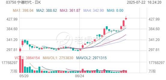 宁德时代盘中涨近4%,最高涨至290港元/股,股价再创新高。自5月20日上市以来,宁德时代累涨超63%。