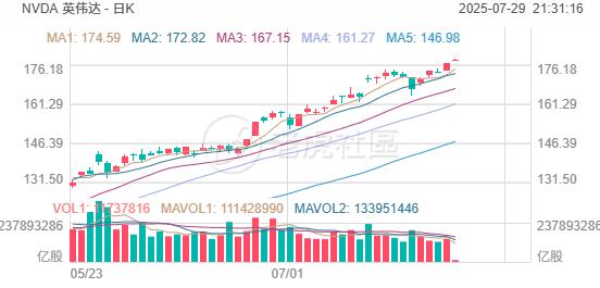 英伟达涨0.7%,股价超178美元,再创历史新高,总市值达4.35万亿美元。
