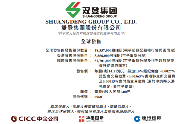 华盛资讯8月18日消息, 双登股份 $06960.HK 今日起招股,每股招股价14.51港元,每手500股,一手入场费7328.17港元,预期将于8月26日挂牌上市。