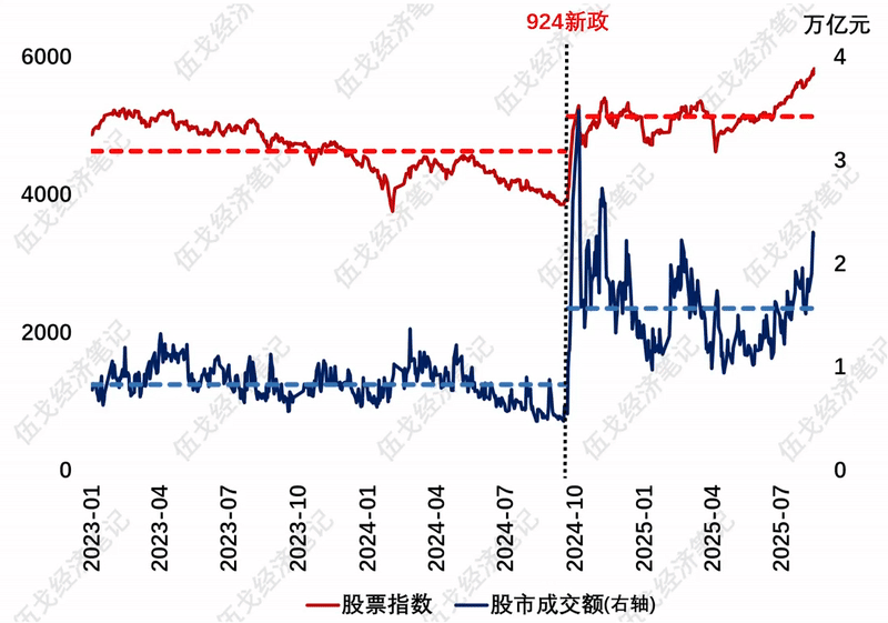 2.本轮股指中枢的系统性抬升源于去年9月支持资本市场的货币工具出台,成交量更为明显。后续虽受关税等冲击,股市似已“免疫”。不同过往,本轮股指与企业盈利等基本面显著背离。海外也有支持股市举措下的类似场景,但两者终将趋同。