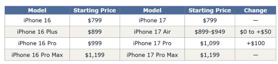 价格,永远是消费者最关心的话题。9月2日,摩根大通发布了关于苹果即将推出的iPhone 17系列手机的定价分析报告。摩根大通预测,除了Pro型号,iPhone 17系列的价格将基本保持稳定。具体来看: