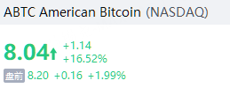 特朗普家族旗下比特币矿商American Bitcoin涨2%,该股昨日首秀收涨超16%,盘中一度翻倍;