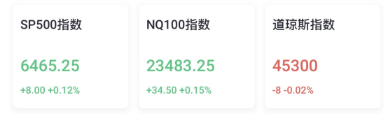 9月4日周四,美股三大股指期货在盘前时段持续震荡。纳指100指数期货涨0.15%,报23483点,标普500指数期货涨0.12%,报6465点,道琼斯指数期货跌0.02%,报45300点。