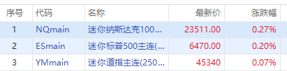 美股三大指数期货盘前集体上扬,纳指期货 $NQmain 涨0.27%,标普500期货 $ESmain 涨0.2%,道指期货 $YMmain 涨0.07%。