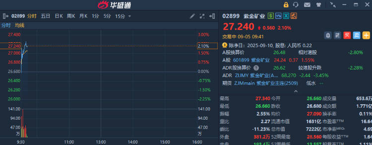 紫金矿业、赤峰黄金涨超2%,山东黄金涨超1%。消息面上,高盛再度唱多黄金,称极端情景下金价将飙升至接近5000美元。