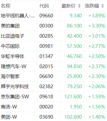 港股异动 | 恒指科技指数涨逾1%,地平线机器人涨近4%