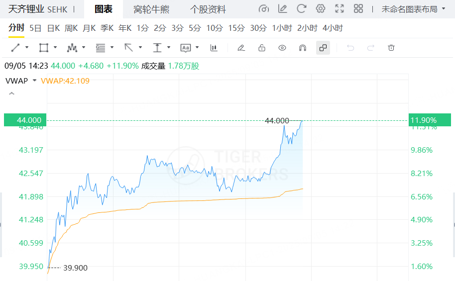 9月5日,有色金属股午后涨幅扩大,天齐锂业涨近12%,赣锋锂业涨近11%,紫金矿业涨超6%,中国铝业涨超5%,中国宏桥涨超4%。