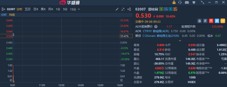 华盛资讯9月8日讯,港股内房股集体走强,碧桂园开盘涨超14%,现涨超10%,领涨内房股;消息面上,碧桂园获纳入港股通名单。