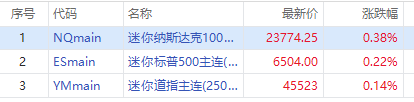 美股三大指数期货盘前集体上扬,纳指期货 $NQmain 涨0.38%,标普500期货 $ESmain 涨0.22%,道指期货 $YMmain 涨0.14%。