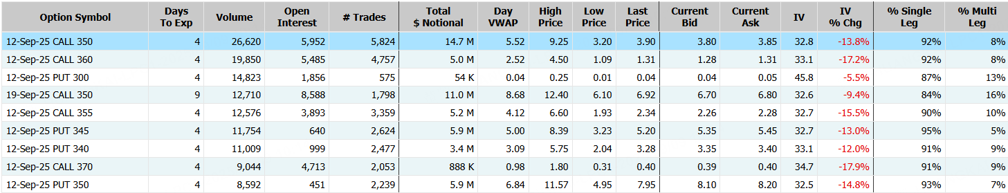 博通隔夜涨超3%,期权合约成交52.21万张,较90日均量放大2.4倍。9月12日到期的350美元的行权看涨期权交易量特别高,共有26,620份合约交易。 $AVGO 20250912 350.0 CALL$