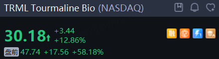 生物制药公司 Tourmaline Bio 涨超58%,诺华同意以每股48美元现金收购该公司。