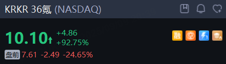 中概股36氪大跌超24%,昨日盘中飙升,收盘涨超92%。