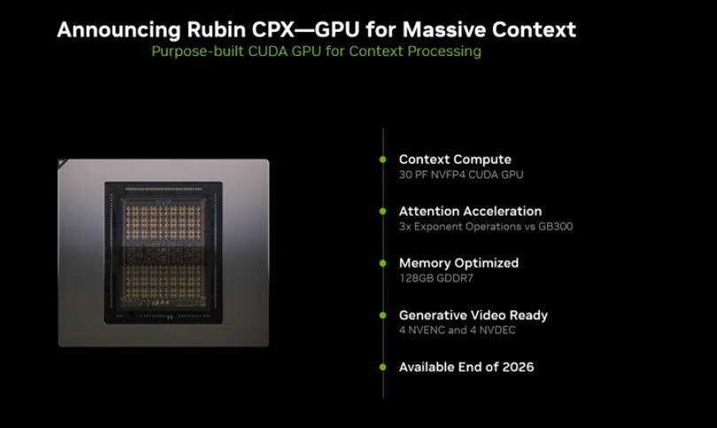对于本款 “Rubin CPX” GPU 新品,英伟达主要提了 3 个方面: