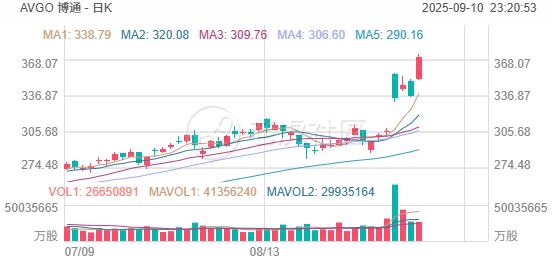 周三,半导体板块持续拉升,博通 涨超10%,台积电涨超5%,均创历史新高。博通总裁兼CEO陈福阳(Hock E. Tan)在近日举行的高盛Communacopia + 科技大会上明确表示,满足少数核心客户的AI计算需求是公司的首要任务,并预计“博通的AI收入将在未来两年内超过软件和非AI收入的总和”。这标志着AI将从一个高增长业务单元,转变为整个公司的绝对核心支柱。