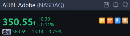 Adobe盘前涨3.75%。Adobe公布2025财年第三季度业绩,营收同比增长11%至59.9亿美元,超过分析师预期的59.1亿美元;调整后每股收益5.31美元,亦超过预期的5.18美元。Adobe今年第二次上调全年营收指引,目前预计营收将介于236.5亿至237亿美元之间。