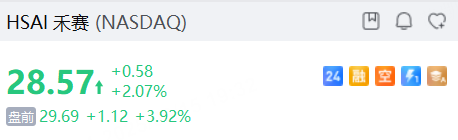 禾赛盘前涨近4%,签超4000万美元Robotaxi激光雷达订单,另外港股暗盘收涨超7%