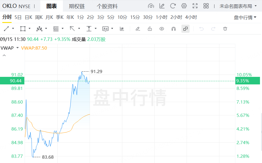 9月15日,美股核电板块盘中持续走强,Oklo Inc.涨超9%,Nuclear Energy Inc涨近8%,Graham涨近5%,Centrus Energy涨超4%。