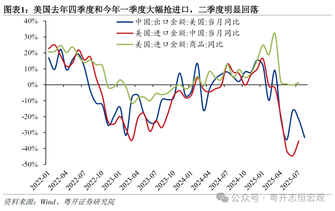 去年四季度以来,中国经济主要受两大因素支撑:一是出口超预期强劲,关税战风险下的抢出口和抢转口行为,以及中国产业链供应链的强大国际竞争力,带动中国出口保持韧性;二是宏观政策加码发力,消费品以旧换新政策带动消费明显回升,大规模设备更新政策带动制造业投资增速保持高位,财政靠前发力带动基建投资保持较高增速。今年上半年,出口金额、社零消费、制造业投资、广义基建投资同比分别增长5.9%、5.0%、7.5%和8.9%,从而实现经济同比增长5.3%。