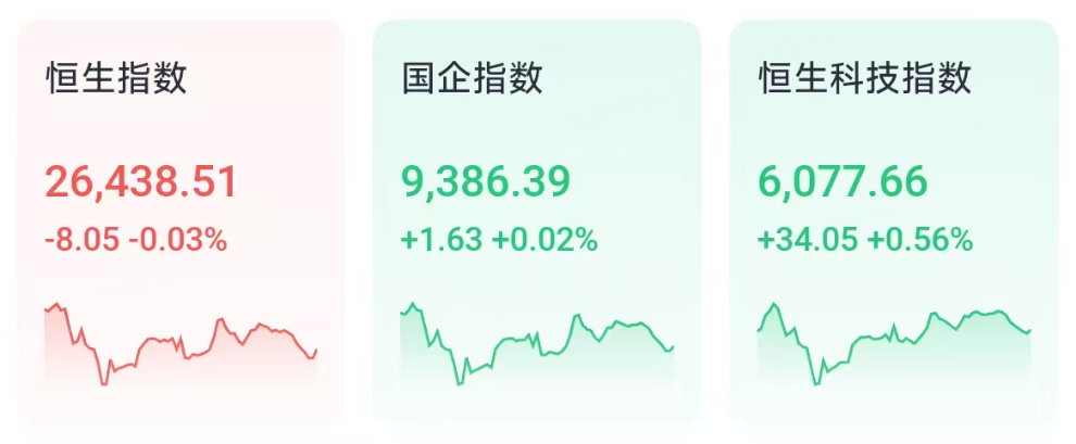 9月16日周二,港股三大指数收盘涨跌不一,盘中均冲高刷新近期阶段新高。截至收盘,恒生指数微幅下跌0.03%,国企指数微涨0.02%,恒生科技指数涨0.56%。
