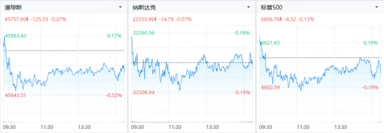 周二(9月16日),美股三大指数小幅收跌,道琼斯指数收盘下跌125.18点,跌幅0.27%,报45758.27点;标普500指数收盘下跌8.49点,跌幅0.13%,报6606.79点;纳斯达克综合指数收盘下跌14.79点,跌幅0.07%,报22333.96点。