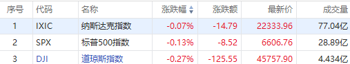 美股三大指数周二小幅收跌,市场静待美联储利率决议;特斯拉收涨2.82%,Meta涨1.87%,亚马逊涨1.13%;中概股多数上涨,蔚来涨超8%,百度涨超7%,阿里巴巴涨超2%。