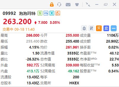 9月18日,泡泡玛特涨超3%,机构称产品二手价格波动无碍长期逻辑。