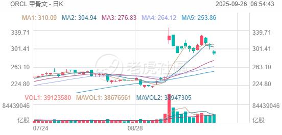 9月26日,甲骨文收跌5.55%,报291.33美元。甲骨文周四下跌的部分原因是由于罗斯柴尔德旗下Redburn机构首次针对甲骨文给出评级——予以“卖出”评级,并预测该股股价将有40%的回调,因为“市场严重高估了”甲骨文近期AI交易对其核心云业务的提振作用。