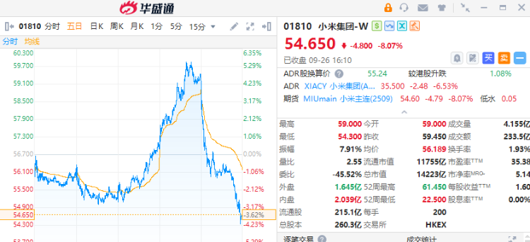 小米集团-W本周冲高回落,股价周五大跌8%,公司发布全新小米17系列手机,起售价4499元,同时小米汽车正式推出的客制化服务,预计将进一步提升电动车平均售价及利润率。摩根士丹利则维持小米“增持”评级,目标价62港元,强调小米17系列的销售表现可能超预期,而定制服务将成为小米电动汽车业务的关键竞争优势。