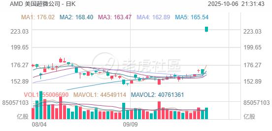 美国超微公司 暴涨34%,与OpenAI达成价值数百亿美元的重磅合作。同时,英伟达跌超1.8%,博通跌0.8%,英特尔涨超3%。