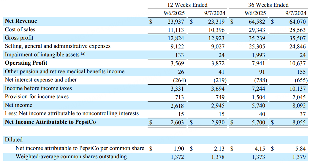 百事可乐Q3营收239.37亿美元超预期,净利润同比下滑