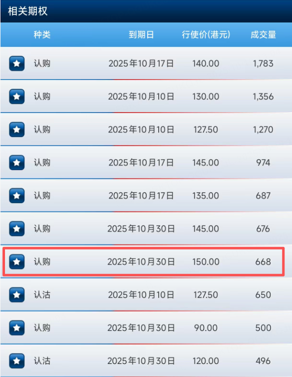 同样受益于AI热潮的 百度集团-SW 上午跌逾5%,在主力科技股中跌幅居前。与阿里的情况相似,百度的认购合约同样具有看点,一份月末到期的CALL,行权价150港元,也有接近20%的涨幅空间。对于此前涨势迅猛、涨幅明显的科技股来说,市场可能需要一个“冷静期”来判断估值的合理性,尤其对于AI概念,巨大的投资与回报如何平衡,是一个全球市场都在思考的问题。
