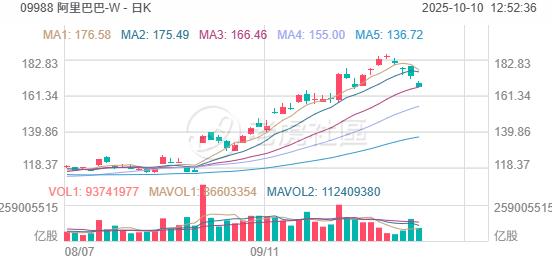 期权成交量最高的阿里巴巴午间走低,日线四连跌,区间跌幅达10%。消息面上,小摩发布研报指出,阿里即将公布截至9月底的财季业绩,预测收入将按年增长5%,经调整盈利料按年跌70%至110亿元人民币,云业务收入按年增幅料加快至30%,而客户管理收入按年增幅维持于10%以上。