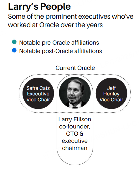 曾在 1984 年加入甲骨文、后创立 Siebel Systems 和 C3.ai 的 汤姆·西贝尔(Tom Siebel) 说:“拉里永远在跳出框架思考,总能预见下一步的趋势。他的韧性惊人。想想科技界经历了多少变革——他让甲骨文一次又一次重生。那人聪明得要命。”