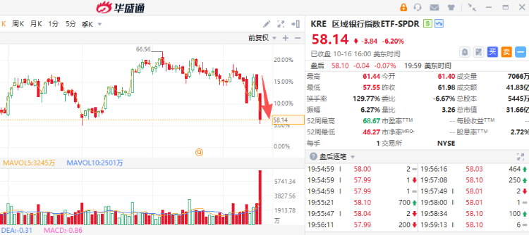 齐昂银行当天暴跌13%,此前该区域性银行披露其加州部门两笔贷款出现意外亏损。美国74家最大银行的市值蒸发超过1000亿美元,标普地区银行精选行业指数周四暴跌6.3%,创出4月关税引发抛售以来的最大跌幅,让人不禁联想到2023年危机期间令市场胆寒的场景。