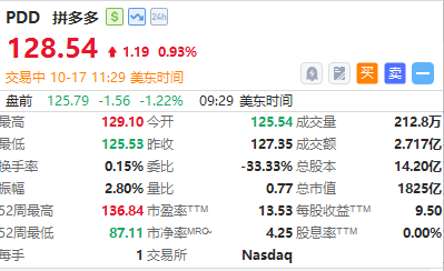 华盛资讯10月17日讯,热门中概股多数走低,拼多多涨近1%;金山云大跌超5%,蔚来跌超3%,小鹏汽车跌超2%,台积电、网易、禾赛、百度、哔哩哔哩跌超1%,理想汽车跌约0.5%。