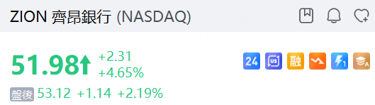 美国地区银行 齐昂银行 (ZION)周一公布第三季度利润实现增长,尽管因两笔贷款遭受重大损失,但强劲的利息收入仍推动业绩上升,推动该行盘后股价上涨2.19%。该行上周披露,其加州分行的两笔工商贷款将在第三季度产生5000万美元损失。