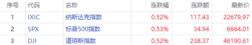 高开高走!截至收盘,道琼斯指数涨1.12%;标普500指数涨1.07%;纳斯达克指数涨1.37%。大型科技股普遍上涨,英伟达跌0.32%,微软涨0.63%,苹果涨3.94%,谷歌涨1.28%,亚马逊涨1.61%,Meta涨2.13%,特斯拉涨1.85%。热门中概股集体上涨,阿里巴巴涨3.84%,京东涨2.09%,拼多多涨2.40%,蔚来涨4.59%,网易涨3.13%,小马智行涨1.76%。
