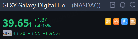 加密矿企 Galaxy Digital Holdings Ltd. 涨近9%,Q3销售额为2840.2万美元,去年同期为857.1万美元;每股收益1.01美元,大幅超预期。