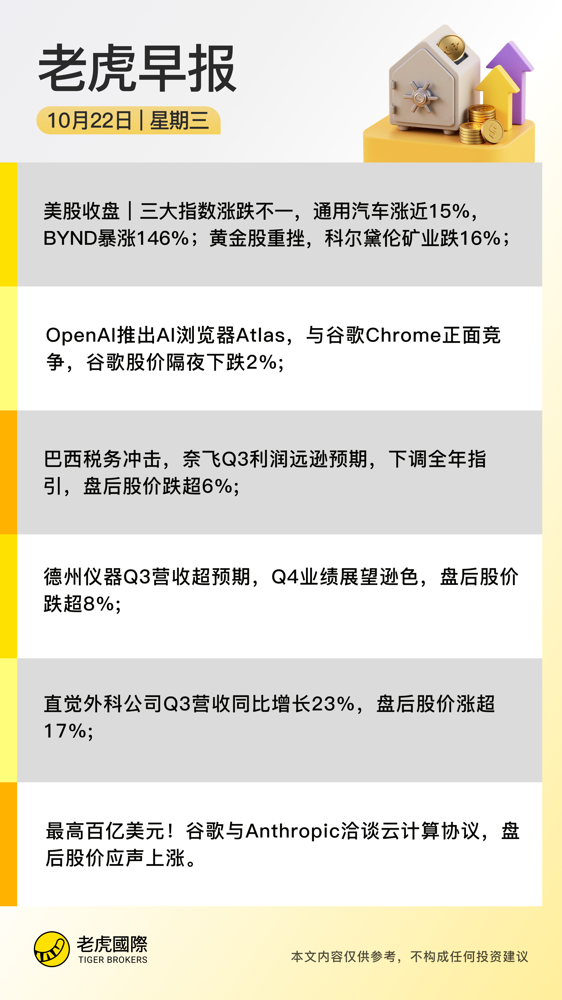 美股收盘|三大指数涨跌不一,通用汽车涨近15%,Beyond Meat暴涨146%;黄金股重挫,科尔黛伦矿业跌超16%
