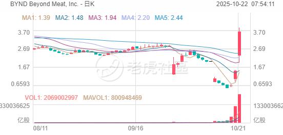 因宣布将大幅扩展在沃尔玛的销售渠道,Meme股Beyond Meat飙升146%,三日累涨约600%。