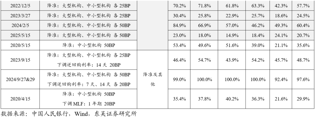 (3)许多货币政策宽松操作在事前已经通过各类官方渠道进行过“吹风”,仅评估最终落地前后的股、债市场表现可能导致分析不准;
