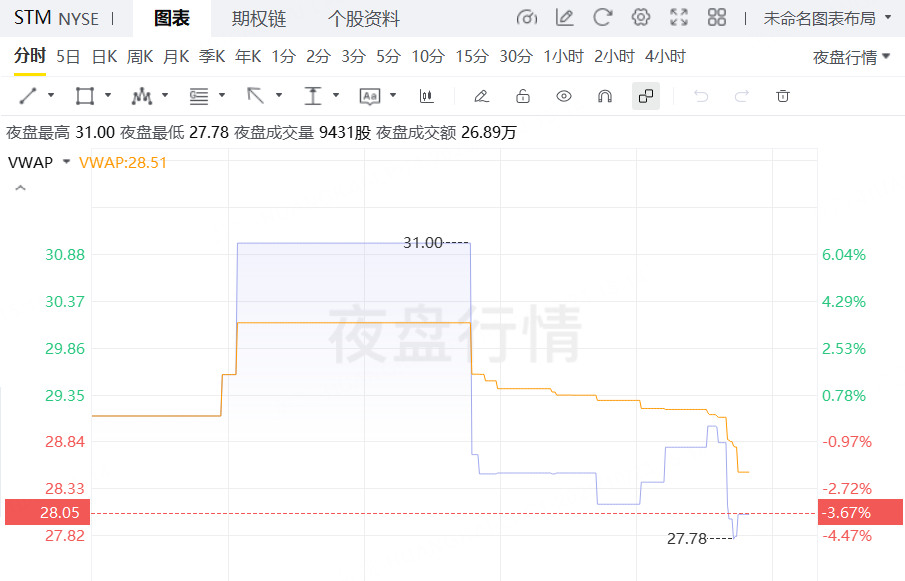财报发布后,意法半导体的股价在夜盘交易中跌超3%。