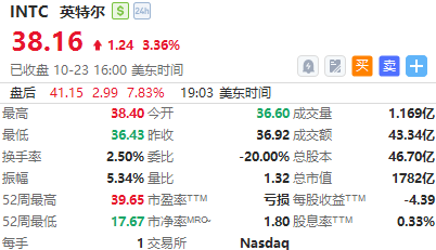 - 英特尔盘后涨超7%,三季度营收136.5亿美元同比增长2.8%
