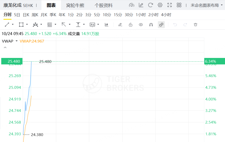 10月24日,港股医药股盘初走强,康龙化成、凯莱英涨超6%,药明康德涨超4%,维亚生物涨超3%。