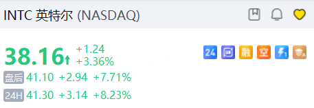 10月24日,美股夜盘时段,英特尔涨超8%,Q3扭亏为盈,营收恢复增长,指引乐观。