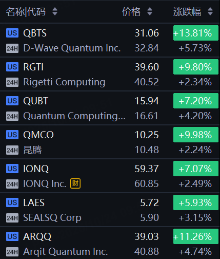 美股量子计算概念股大涨,Rigetti Computing涨近10%,Quantum Computing涨超7%;市场短线交易火热,但政策面仍存高度不确定性。