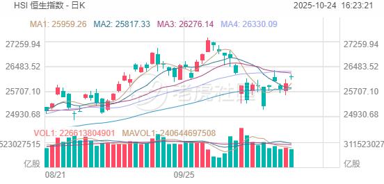 10月24日,港股三大指数集体收涨,恒生科技指数涨1.82%涨幅领先,恒生指数涨0.74%,二者分别收复6000点和26000点整数大关,国企指数涨0.68%。本周三大指数均出现不同程度的上涨行情。