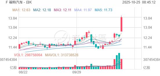 福特汽车大涨超12%,创2020年3月份以来最佳单日表现,三季度利润和销售额超预期。