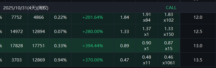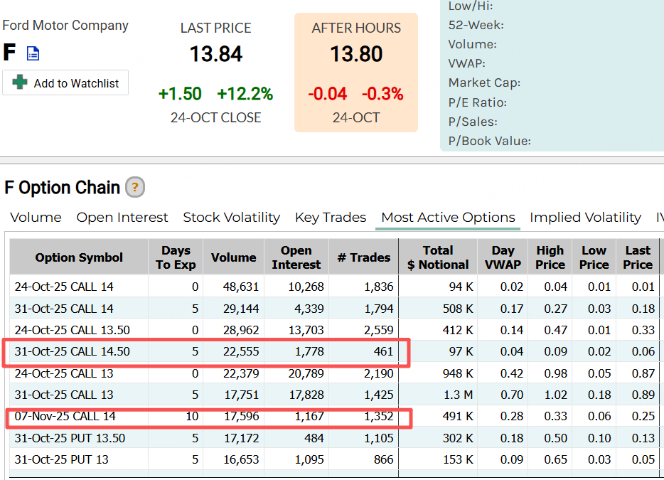 伴随股价大涨,福特CALL的成交价格大幅抬升,最高涨幅近400%。