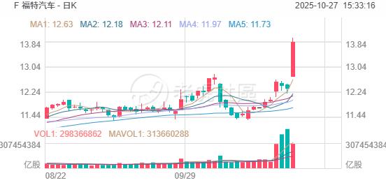 上周五,福特汽车大涨超12%,股价创2024年7月以来新高。福特第三季度的利润和销售额仍超出华尔街预期,整体业绩表现强劲。三季度经调整每股收益为45美分,高于分析师平均预期的36美分;销售额达到创纪录的505亿美元,同样高于分析师预期的437亿美元。
